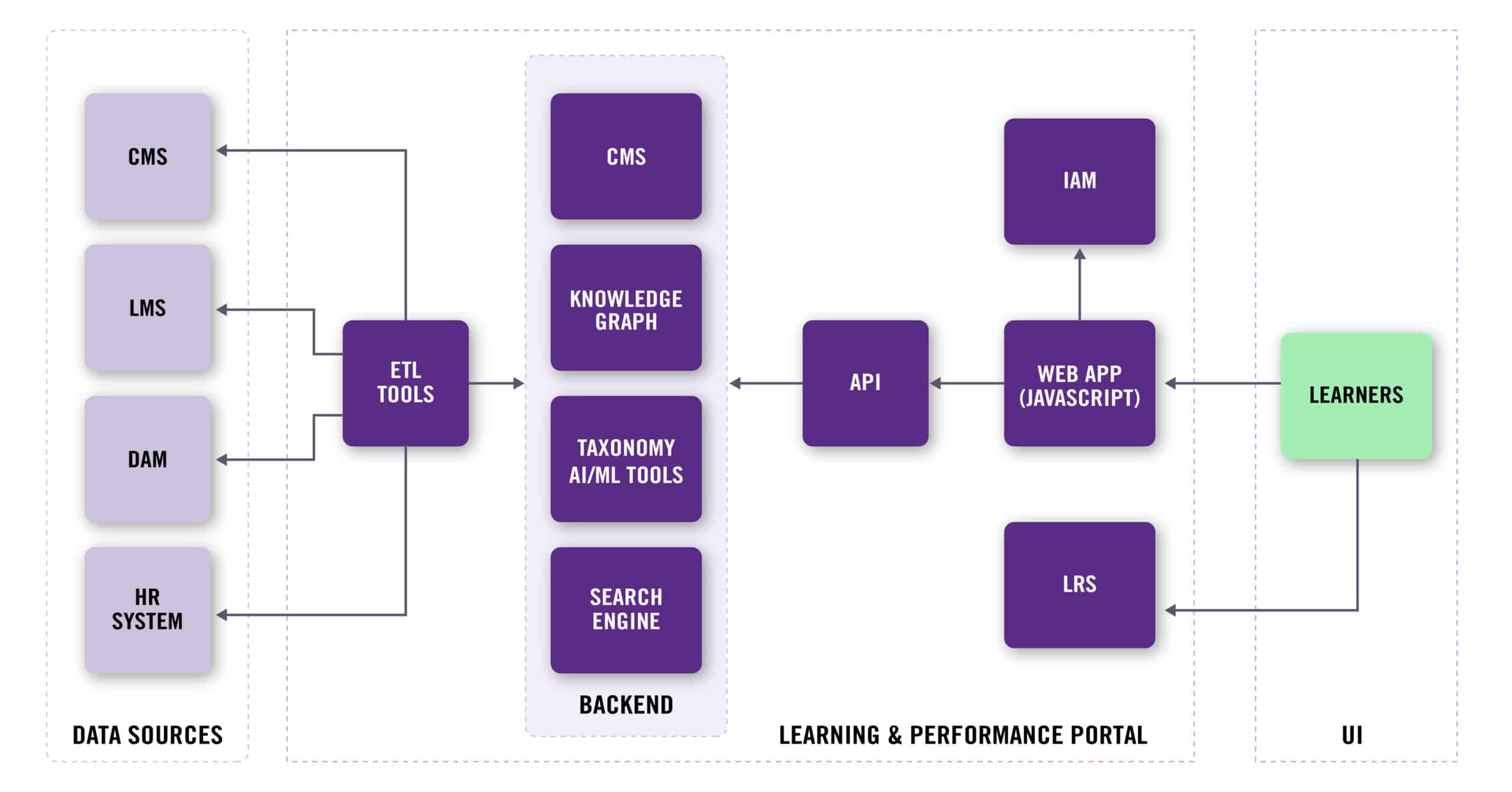 A modern learning ecosystem requires a diverse body of learning content, from eLearning courses and webinars to performance support and communities of practice. Often we need multiple systems to best enable this diverse learning content. A Learning and Performance Portal can provide that single entry point for learners so that they can find everything they need to develop a new competency or perform a task all in one place. Further, this learning content is automatically aggregated – removing a manual content maintenance burden from your instructional designers and trainers. If you can use some support in the design and development of a Learning and Performance Portal, Enterprise Knowledge can help.