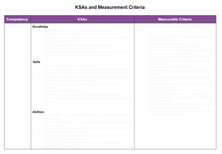 A private learning organization that partners with the federal government to train their employees was undergoing a transformation from a brick-and-mortar learning institution to an all-digital learning platform. This transformation, further accelerated by the global impact of COVID-19, shed a bright light on the faculty’s competency and skills deficits in the realm of digital learning and online instruction. In light of this transformation, the organization’s Human Resources Department contracted Enterprise Knowledge to: