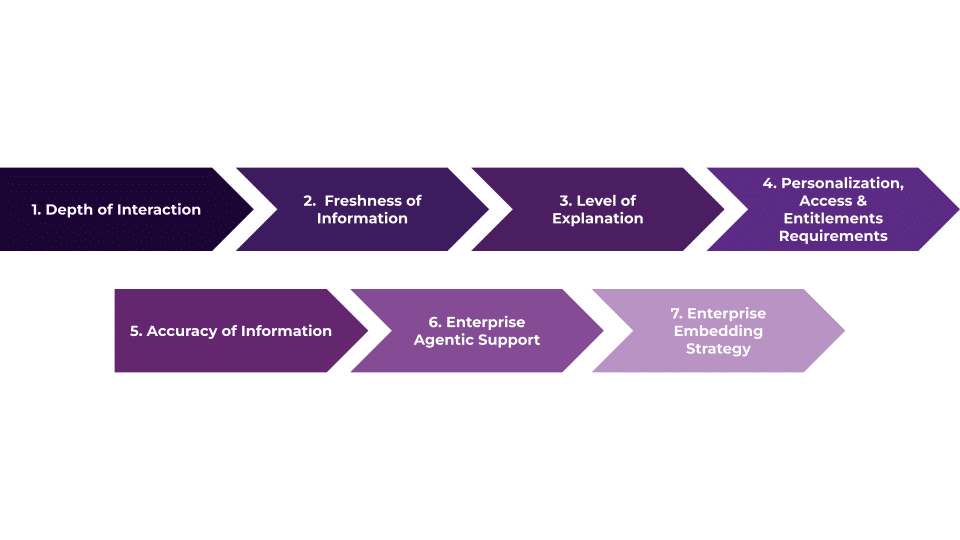 5. Accuracy of Information: refers to how reliably and correctly the LLM solution can answer user queries. At lower levels, users receive reasonable answers that may have minor ambiguities or occasional inaccuracies. At the highest accuracy level, each response is traced back to original source materials and are cross-validated with authoritative sources.