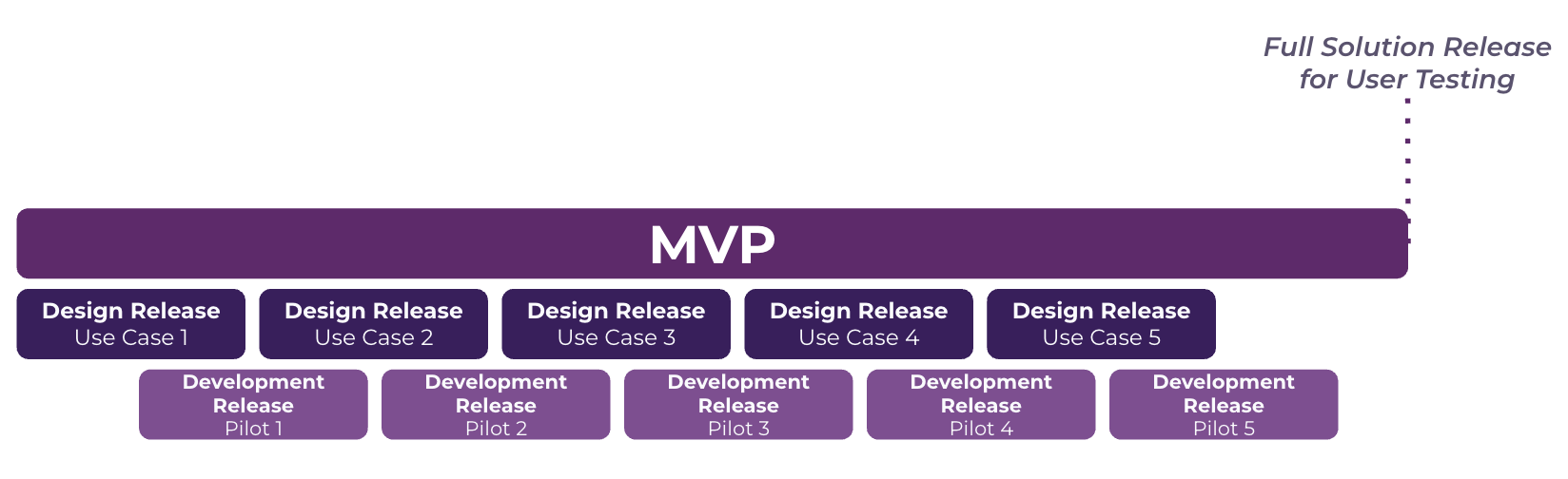 Development releases translate design outputs into working technical components. These releases prioritize feasibility, rapid iteration, and incremental value, while maintaining a clear path toward scalability. Development releases often begin with limited-scope pilots that validate capability approaches and inform future automation and scale.