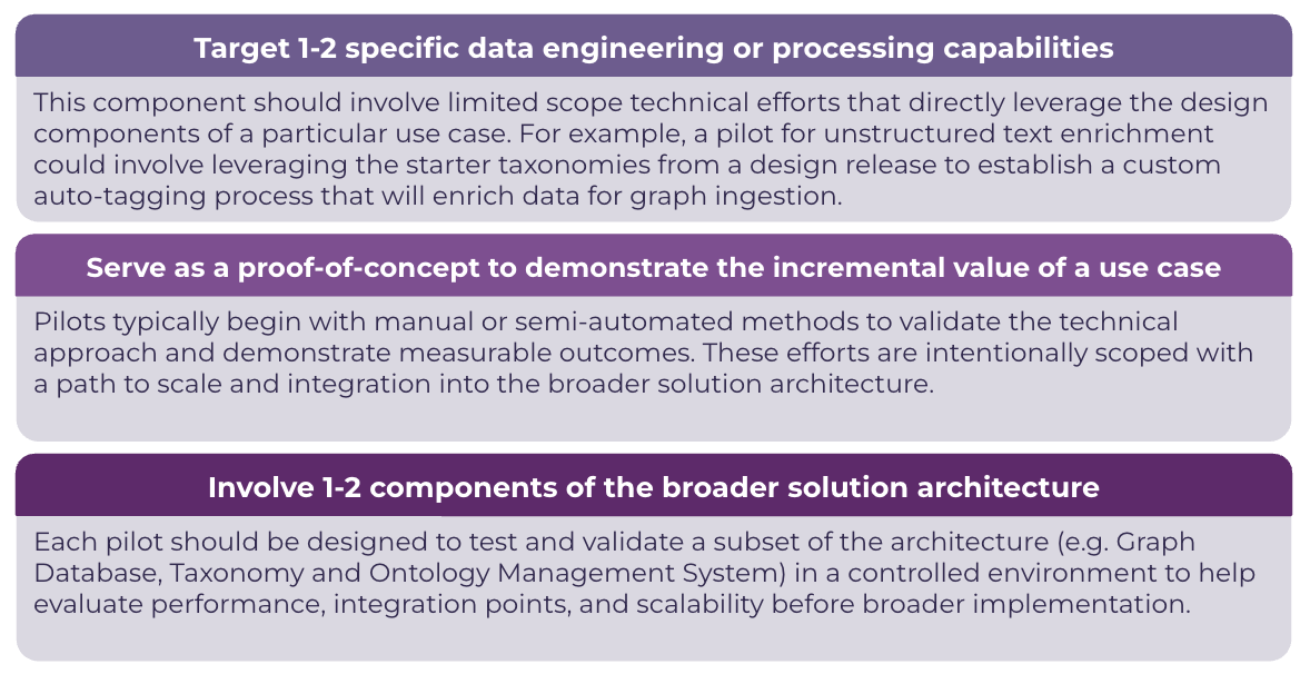 A semantic layer development release or “pilot” for a graph-based solution should: